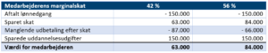 Nedenfor er et eksempel på bruttotrækordning illustreret, hvor en medarbejder har fået finansieret en uddannelsesudgift på kr. 150.000 igennem en bruttotrækordning: