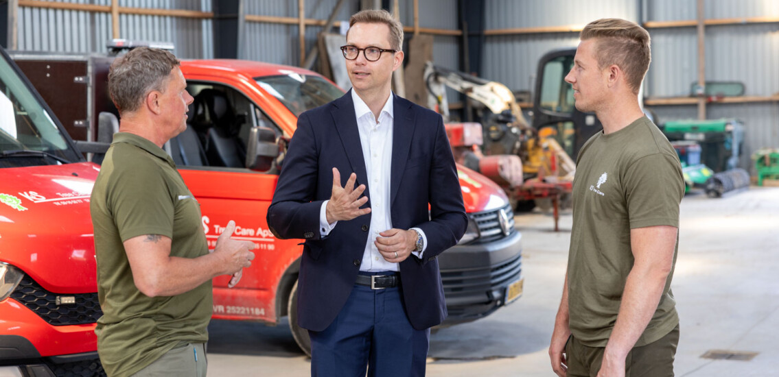“Det er et stort spring at gå fra ansat til virksomhedsejer, selvom jeg har arbejdet sammen med min far i en del år efterhånden. Derfor er jeg glad for, at vi fik sat gang i overdragelsen i god tid, så jeg med ro i maven kan overtage driften stille og roligt. For jeg vil nemlig gerne fortsat bruge meget af min tid ude i marken og møde kunderne,” fortæller Nikolaj Baron, medejer af KS Tree Care.